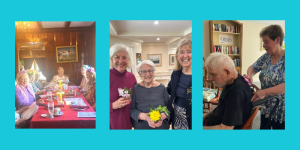 What is May, but a breeze between spring and summer? This month has blown by with all the activities and celebrations. Connie’s friends stopped by with flower arrangements for every resident! (See photo above middle).